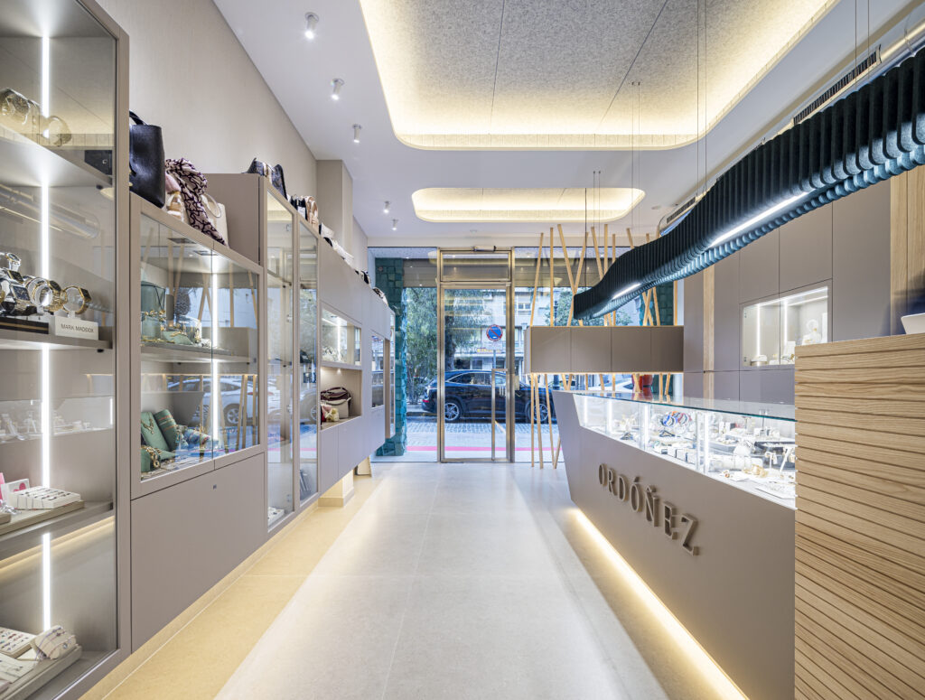 La Joyería Ordóñez es un proyecto integral de reforma e interiorismo en el que la carpintería a medida y el diseño contemporáneo se unen para dar forma a un espacio elegante, exclusivo y altamente funcional. Un entorno diseñado para realzar cada pieza y ofrecer una experiencia de compra sofisticada, cuidada al detalle y coherente con la identidad de la marca.